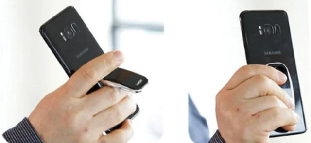 そして、スマートフォンの充電センサーの位置はスマートフォン機種によって異なる場合があります。 スマホに臨時装着して上下に動いて充電される部分を避けて装着をお願いします。 (スタッフのスマートフォンはアンドロイドスマートフォンで充電センサーが中央にあり、裏面下段のラインに合わせて取り付けました。)