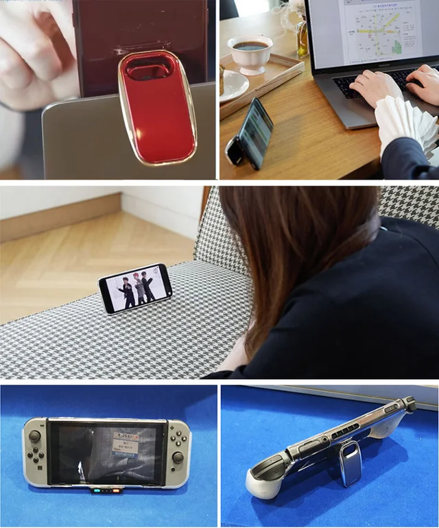 ライキット(LAIKIT)スマートフォングリップは縦、横に立てられるだけでなく、ノートパソコンの画面上部に引っ掛けることもできます。 また、それ以外の作業時に動画通話をしながら使用する場合は、取っ手を広げて掛けられるところにかけて作業をしながら通話が可能です。 揺らぐことなく不便なくお使いください。