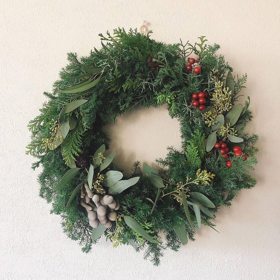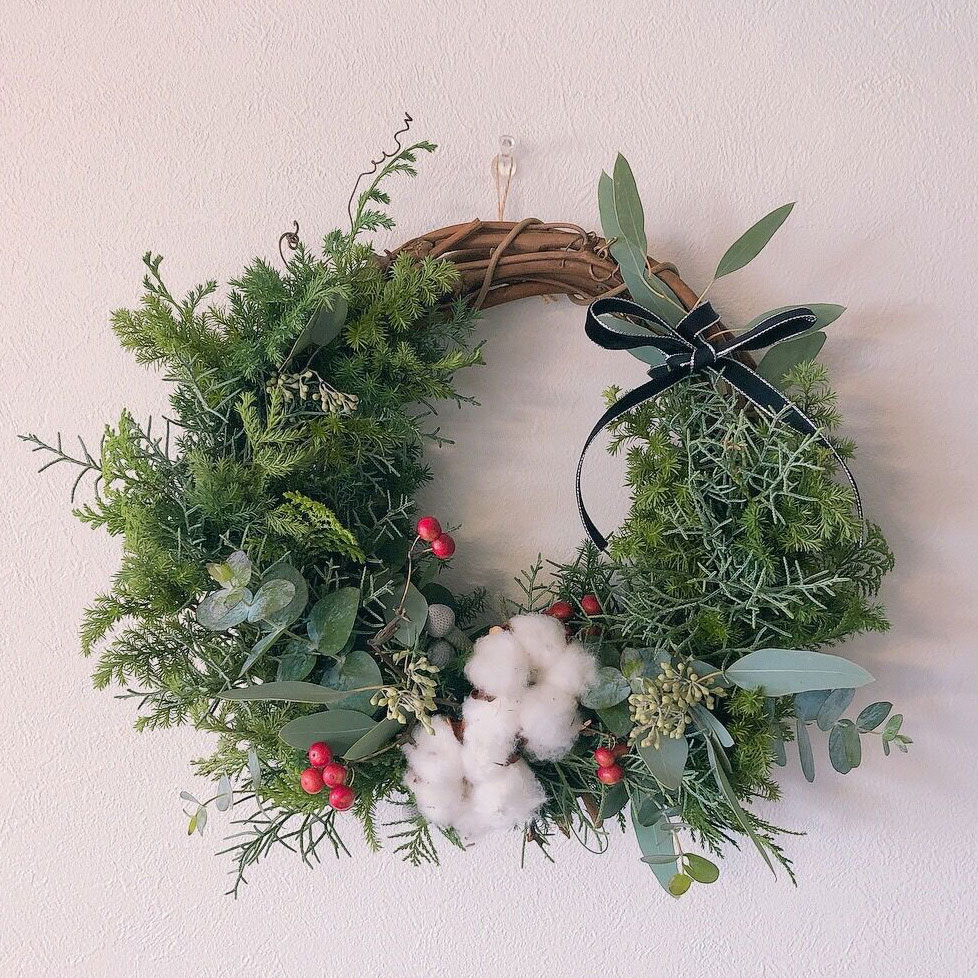 近年、クリスマスリースはクリスマスツリーと並んでクリスマスの風物詩になっています。玄関先にリースを飾るご家庭が増えているのは、SNSの影響が大きいです。欧米の風習が直に感じられるようになりました。