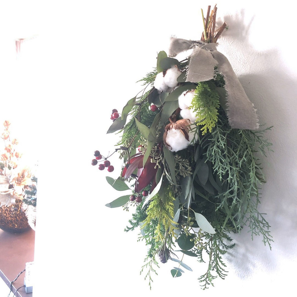 ナチュラルクリスマスリース、スワッグは時間もかかり、材料をそろえるのも大変ですが、プリザや造花とは違いホンモノ志向の方には是非オススメです